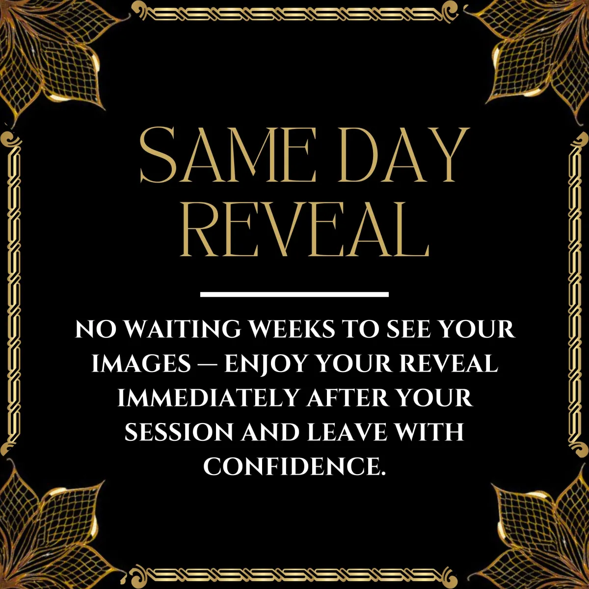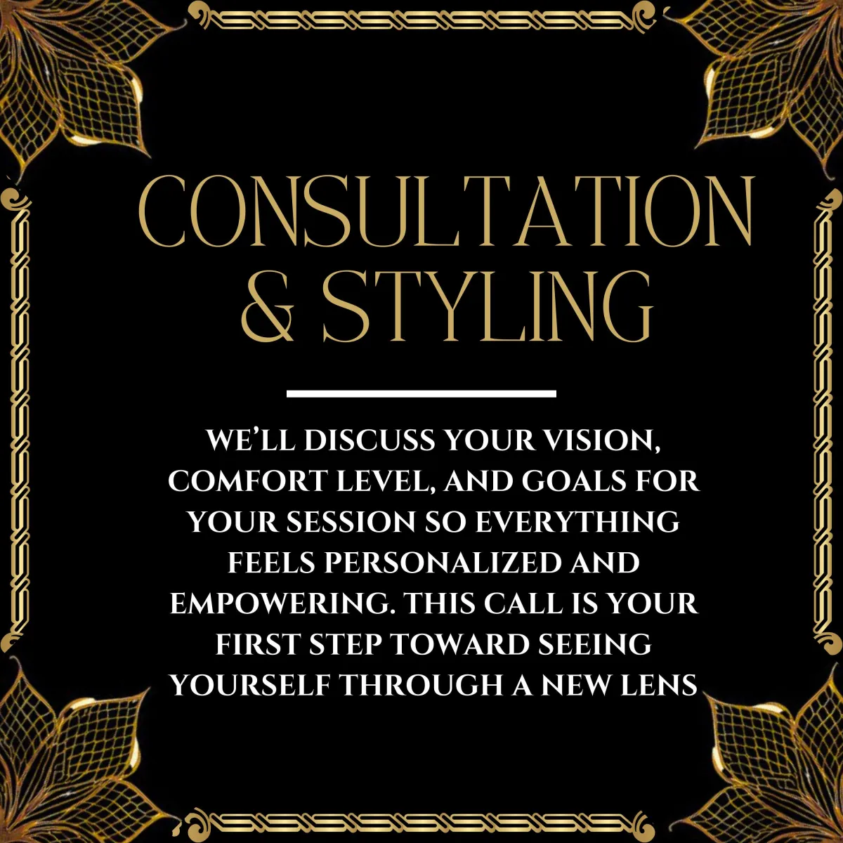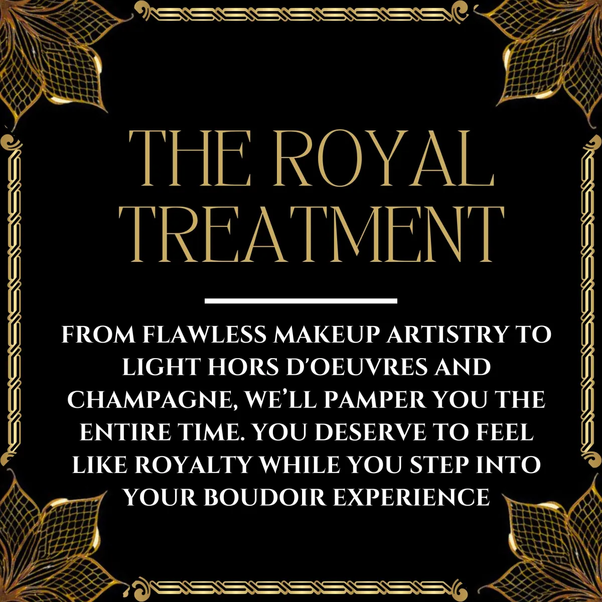 Every session includes a private consultation, professional make-up, full guidance through your shoot, curated charcuterie with champagne, and a same-day image reveal so you can leave with confidence.